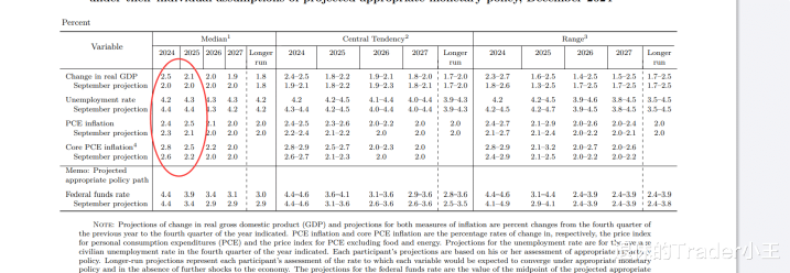 SEP中夸耀出了好意思联储对异日通胀的担忧,12月份的SEP里对24年和25年的PCE预期相较9月份的SEP有全面的上调。