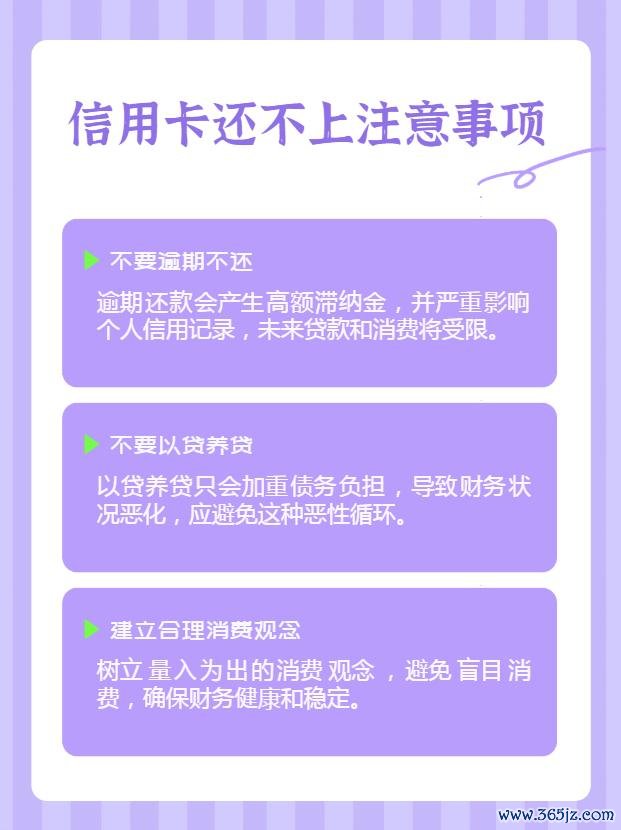 1️⃣ 千万不要落后不还,落后会产生高额滞纳金,还会影响你的个东说念主信用纪录,以后贷款买房买车齐会受影响。 2️⃣ 千万不要以贷养贷,这么只会越陷越深。 3️⃣ 诞生合理的耗尽不雅念,节省,不要盲目耗尽。